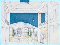 Preliminary study and research; schematic spatial diagrams; site placement; preliminary plans and sketches; Perspectives and color visuals.